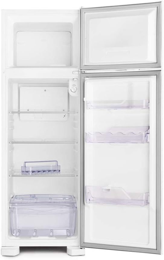 | Configuração | Congelador na parte superior, geladeira com duas portas |