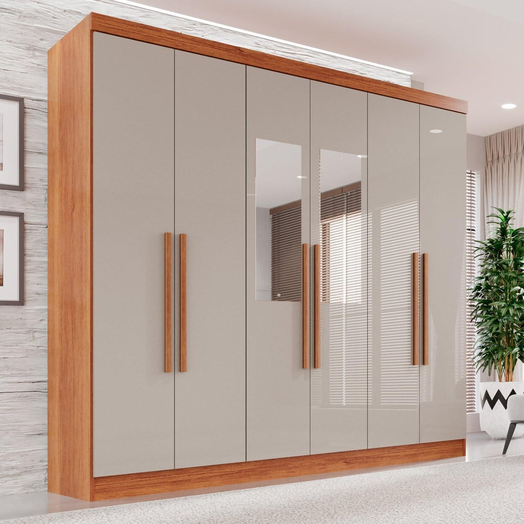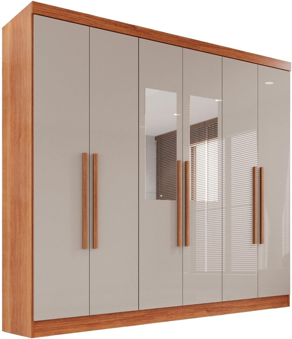 Guarda-roupa Casal com Espelho 6 Portas 2 Gavetas França Cinamomo/Off-White. Este lindo Guarda Roupa com Espelho 6 Portas 2 Gavetas França é um produto de excelente qualidade, diferenciado pela sua resistência, durabilidade, funcionalidade e beleza, ele é a melhor opção para deixar seu dormitório muito mais arrumado e convidativo. Com corrediças telescópicas que permitem uma abertura total das gavetas, parte interna espaçosa, divisões internas que oferecem praticidade e organização, puxadores de madeira que garante maior durabilidade, suporte embaixo das gavetas para dar uma sustentação reforçada e cabideiro em alumínio. Se encaixa facilmente em vários estilos de decoração com cores modernas. Aproveite, você merece!