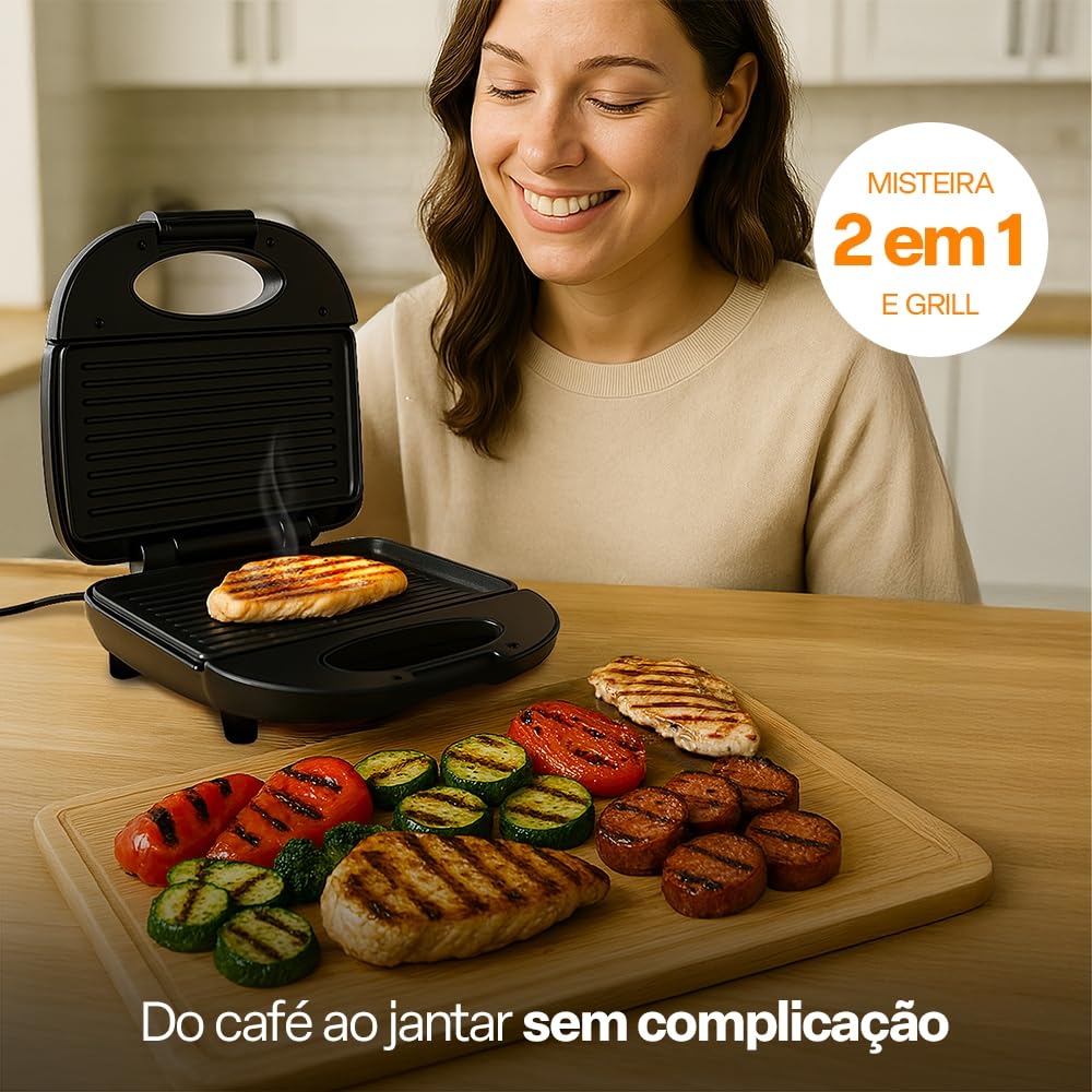 - Chapa com revestimento antiaderente de alta qualidade – Evita que os alimentos grudem e facilita muito a limpeza após o uso.